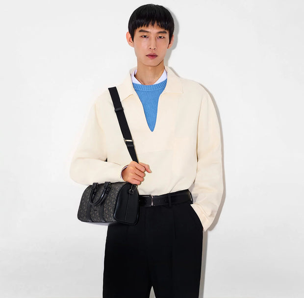 Embossed Leather Reversible Pin Belt - Black