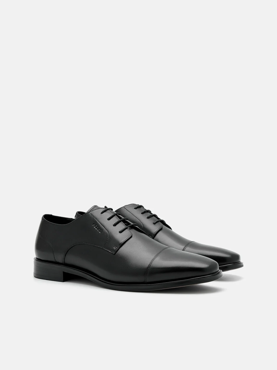 Incorporate a refined element in your formal ensembles. These leather shoes have a subtle gloss that lends an effortless finishing.