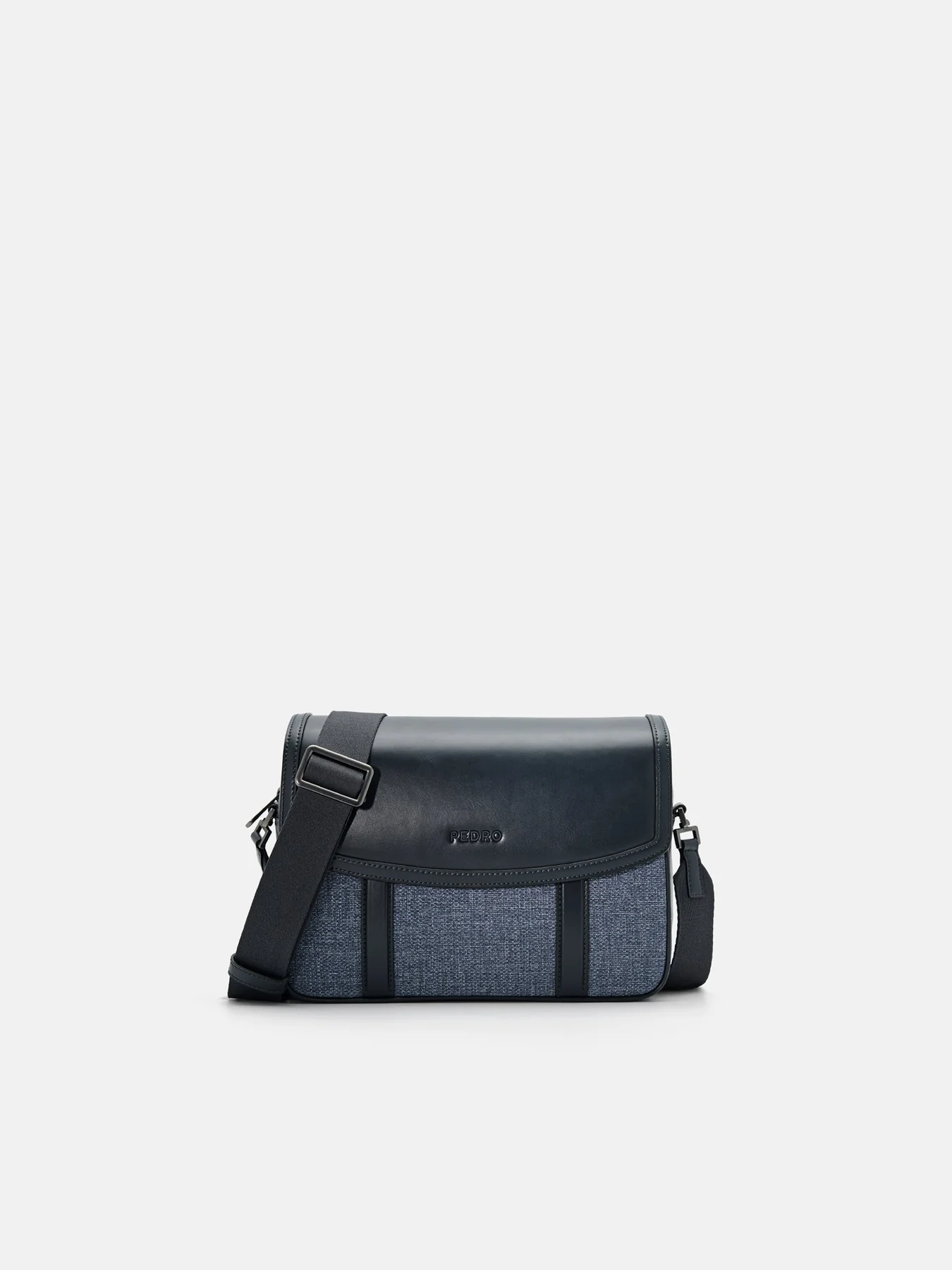 The Duncan Messenger Bag redefines sophistication with a sleek envelope flap and dual-material design, blending high-style refinement with urban edge.