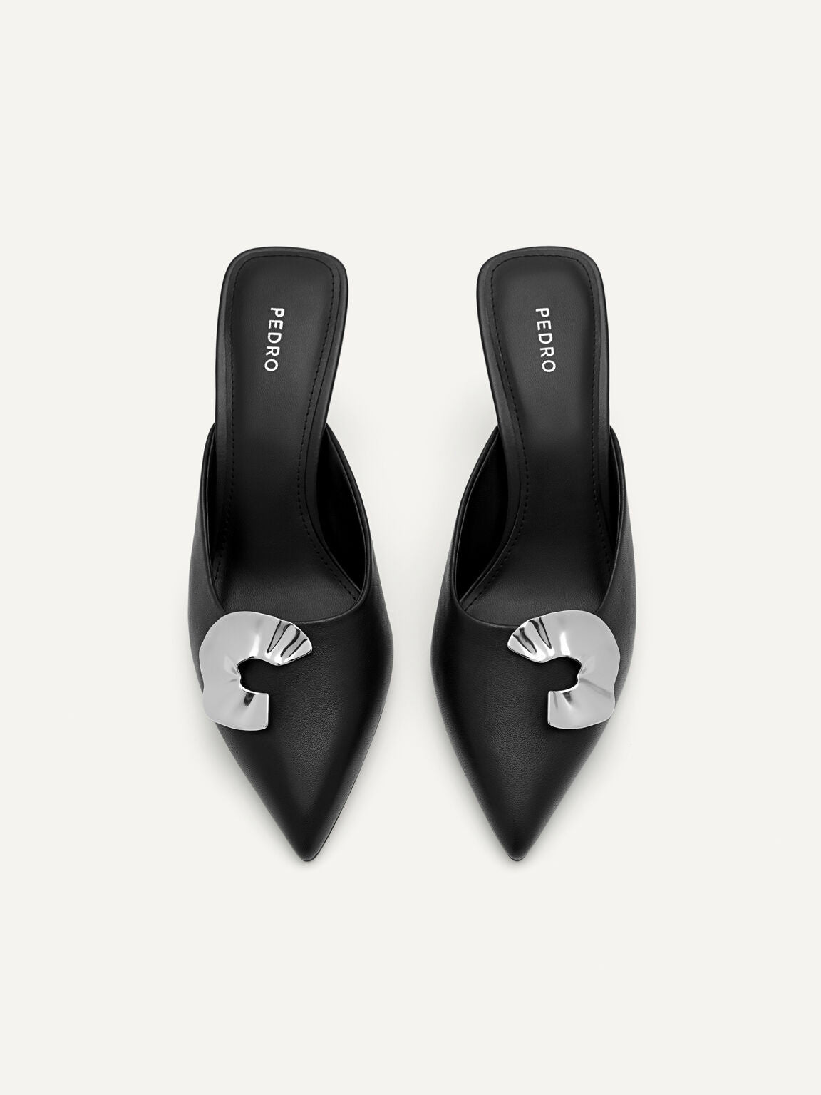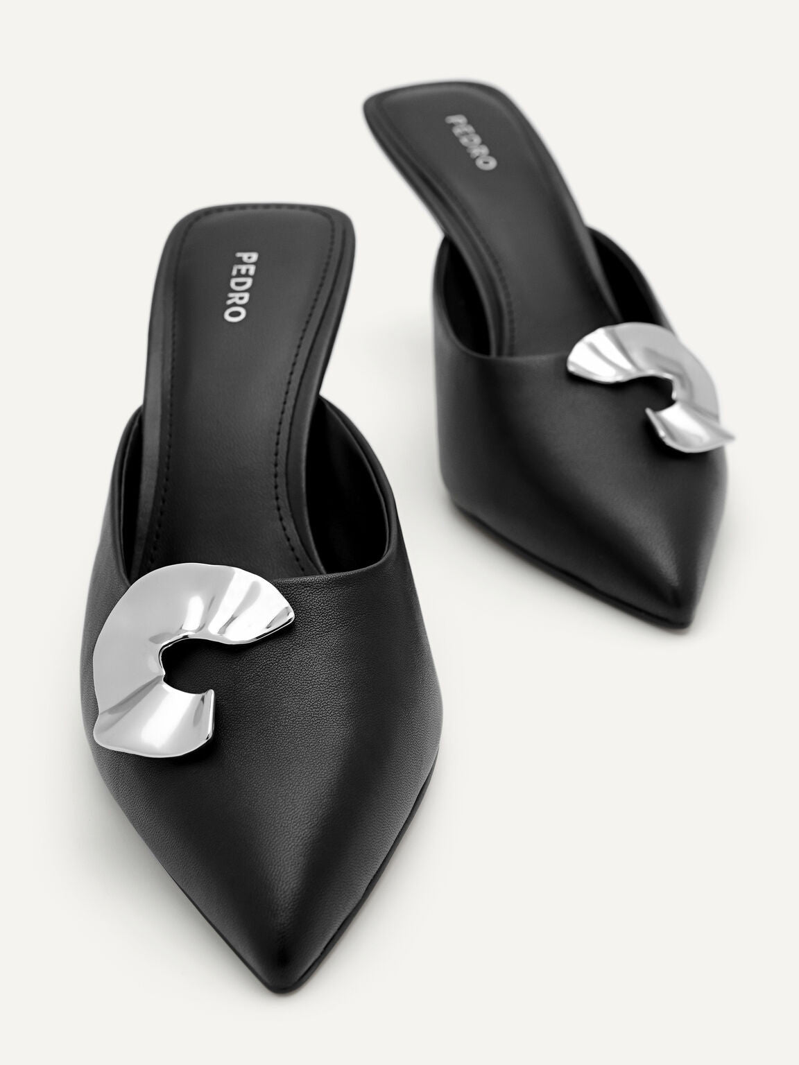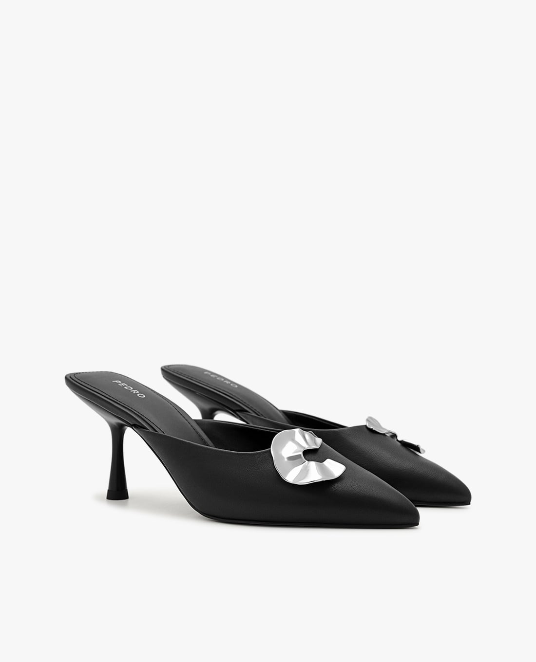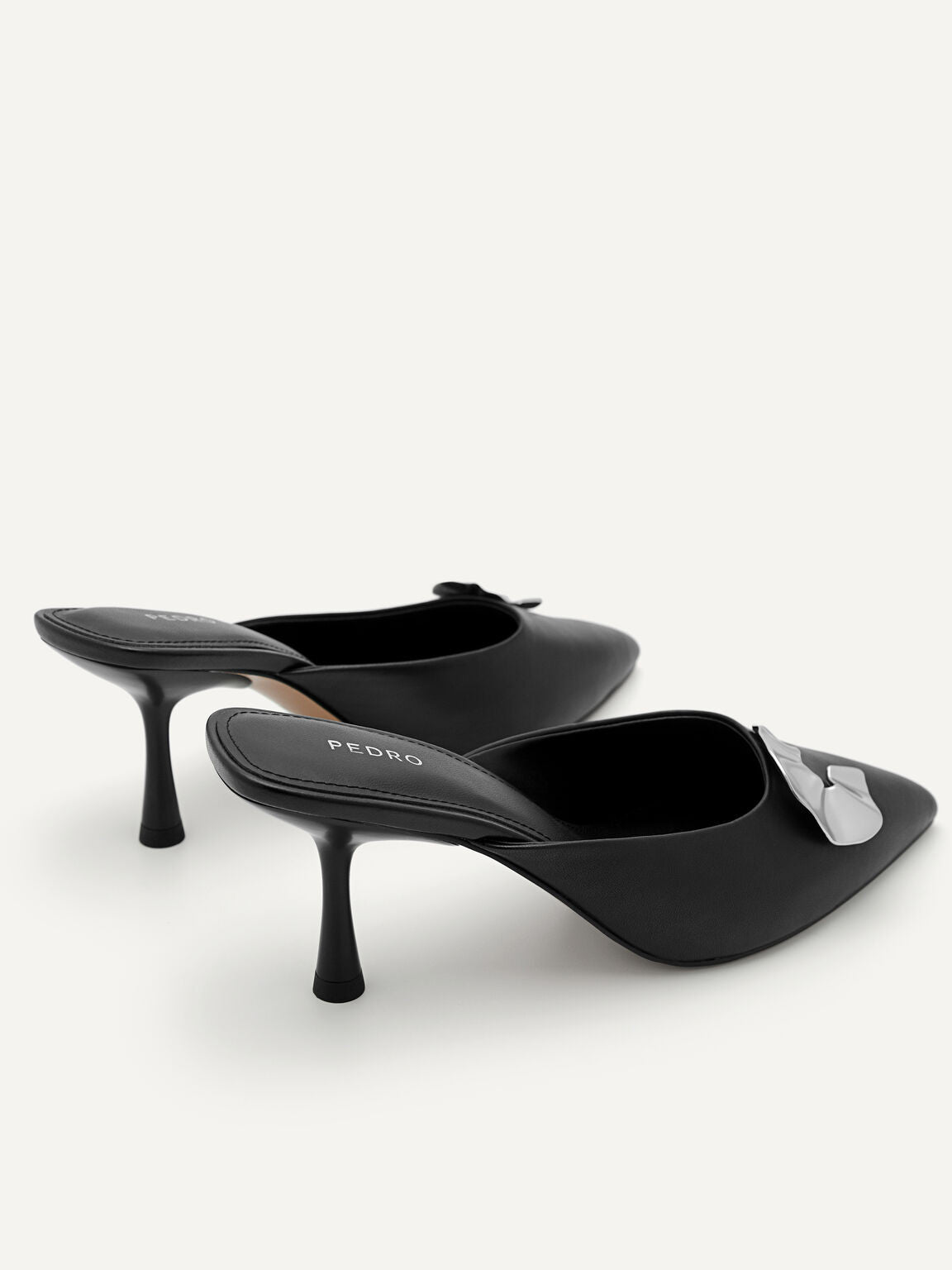 Flaunt your profile in a fancy yet feminine way with the Iris Leather Heel Mules. Made from kid leather in...