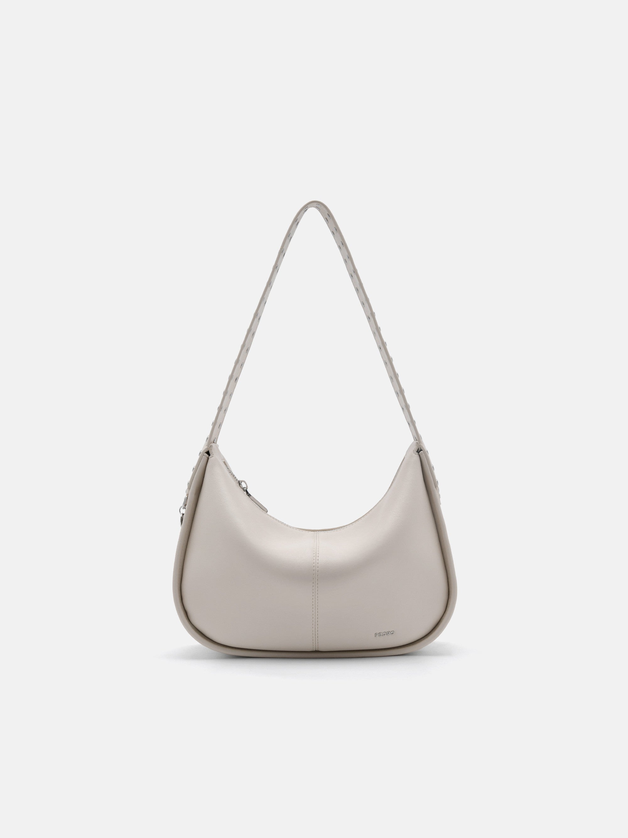 Soft yet structured, this bag's rounded form exudes relaxed elegance, while the studded shoulder strap adds a bold touch, enhancing...