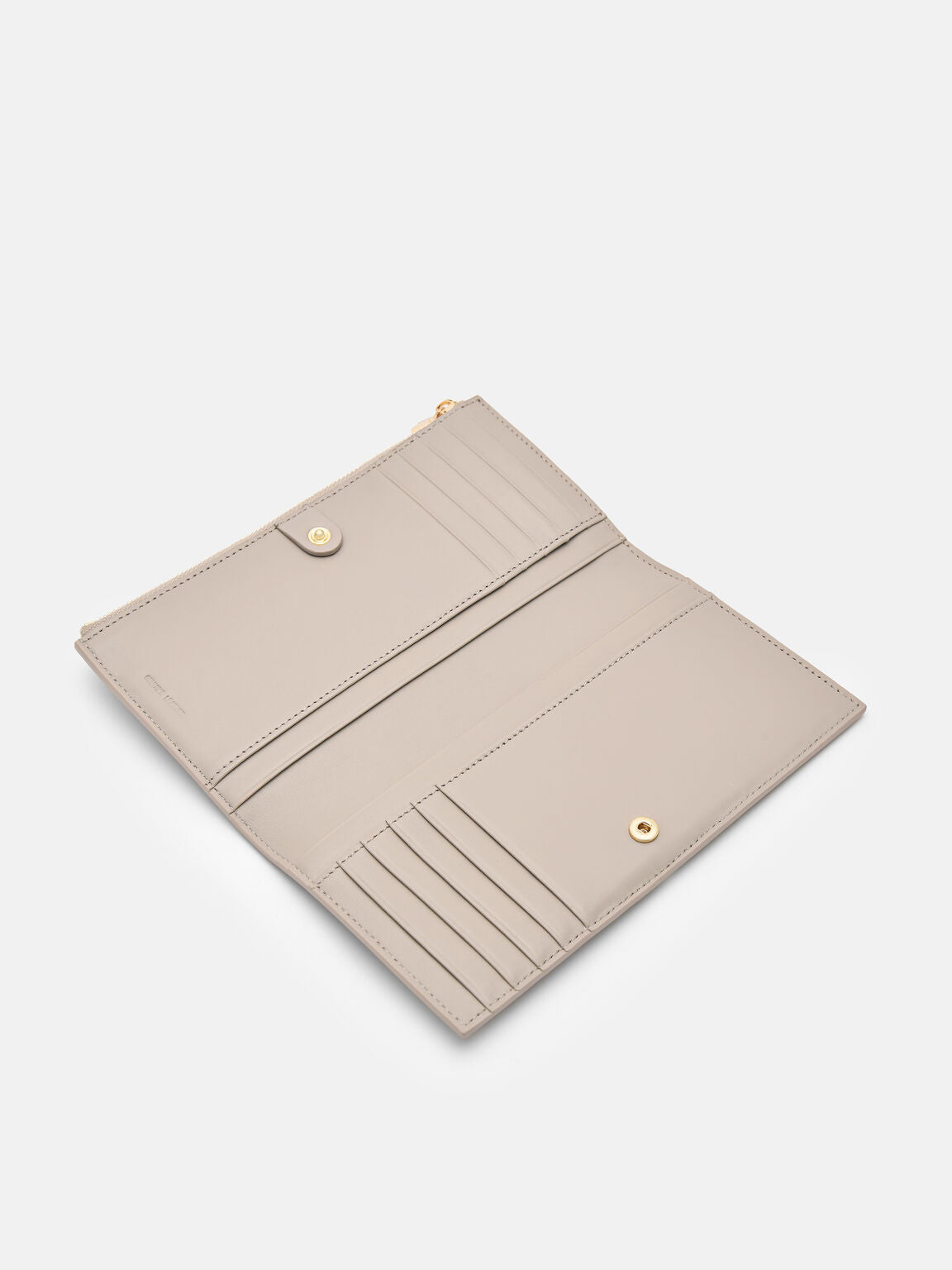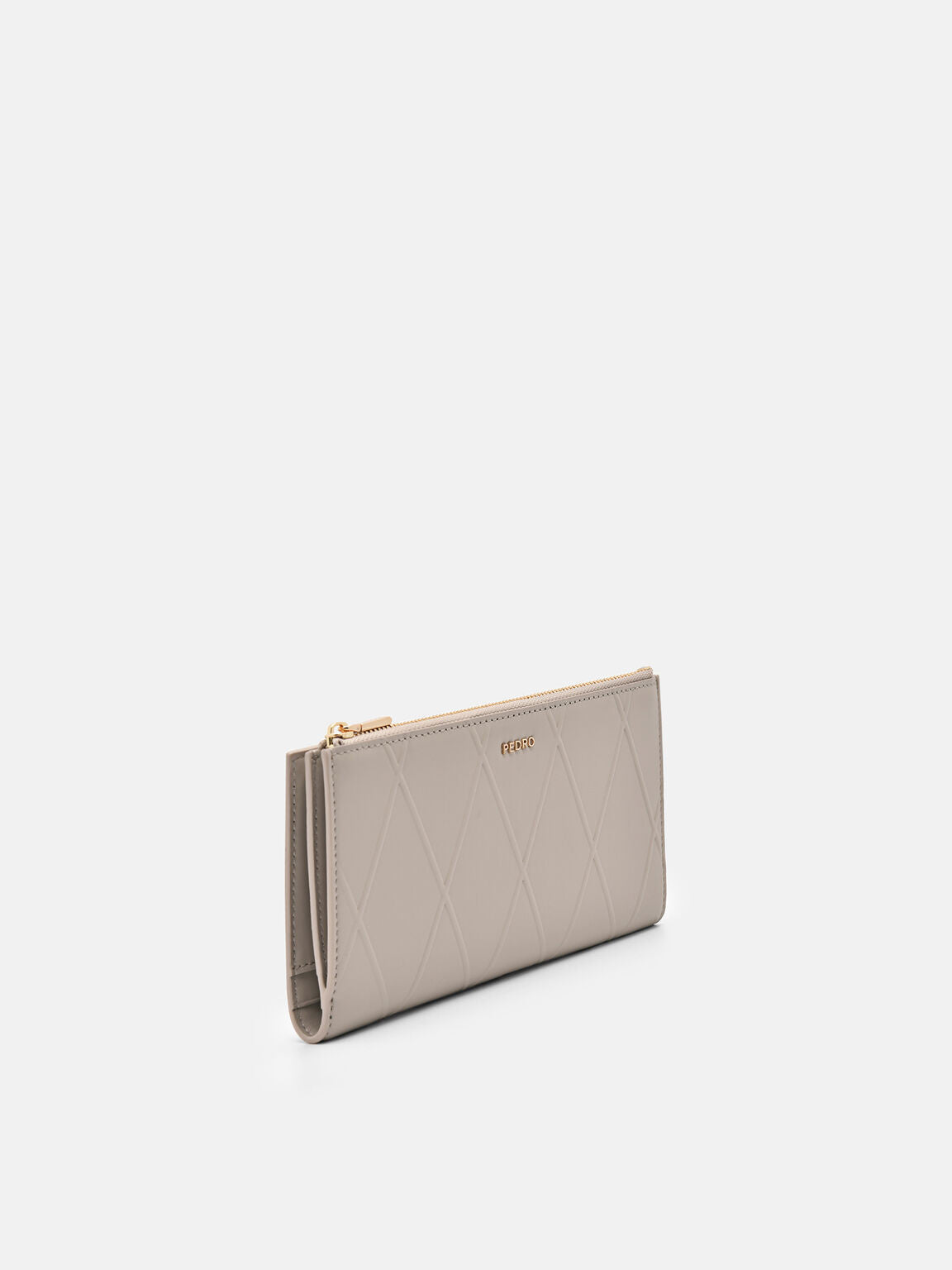 Crafted from kid leather, the Leather Bi-Fold Long Wallet boasts a tasteful quilted design that exudes sophistication. Its top zipper...