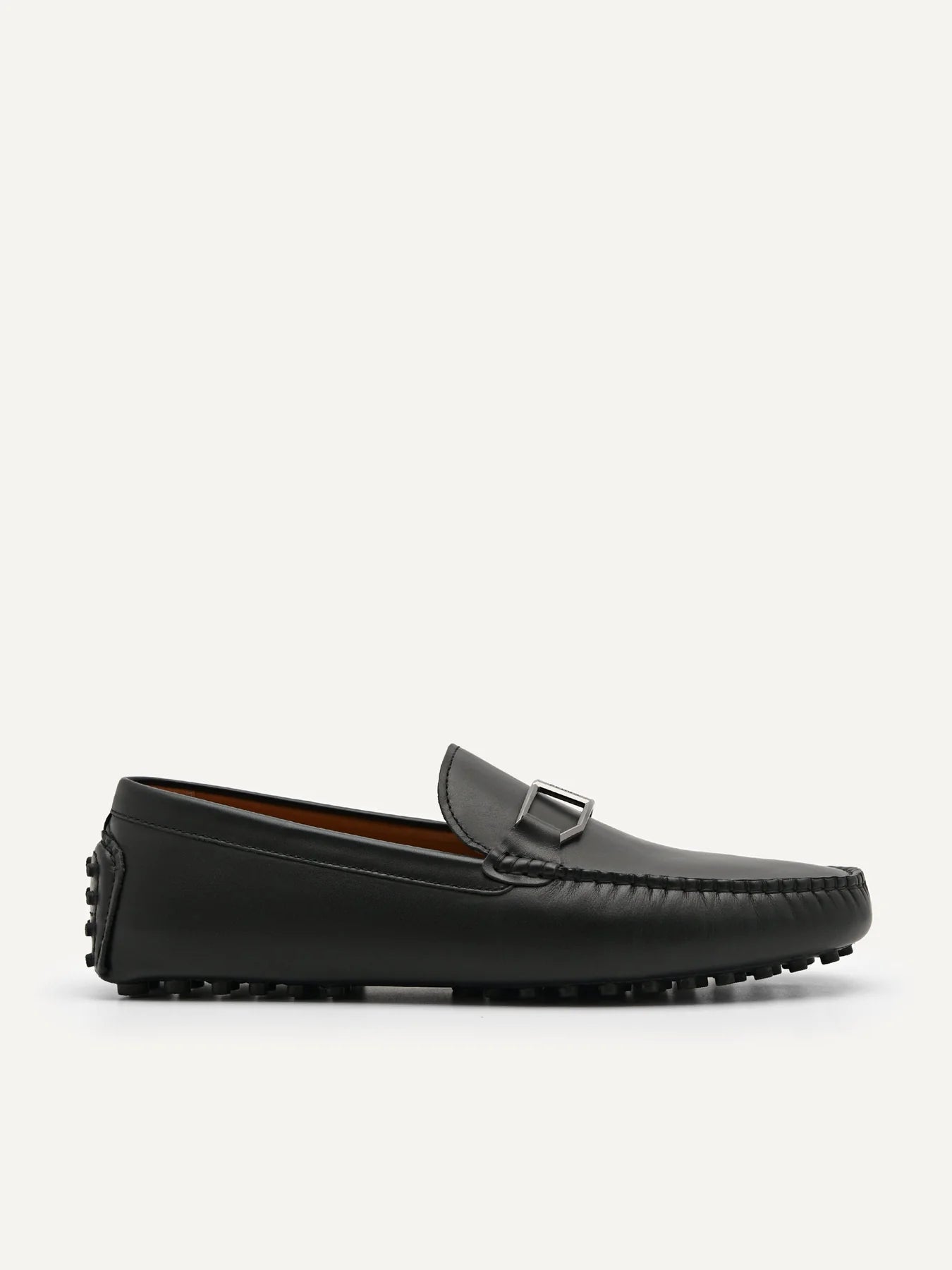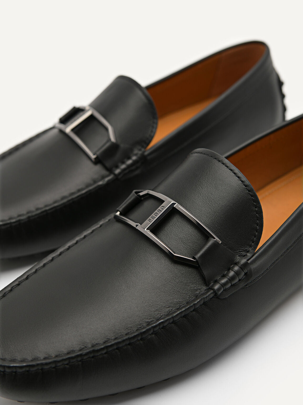 Leather Buckle Moccasins - Black