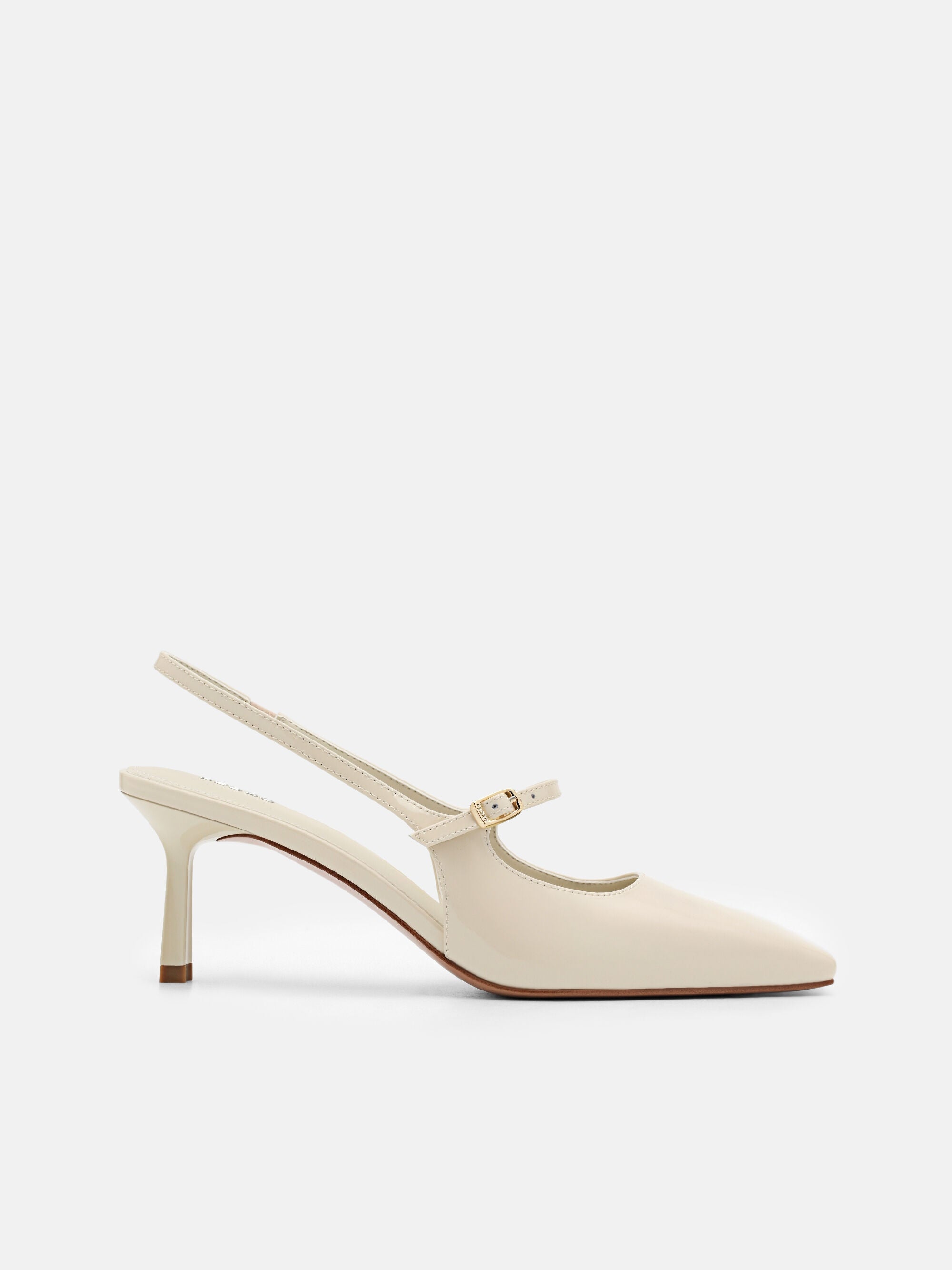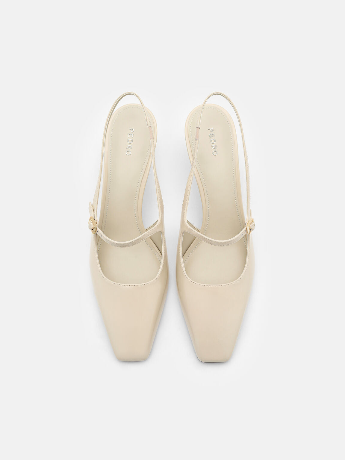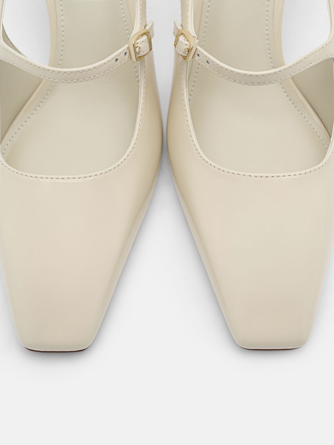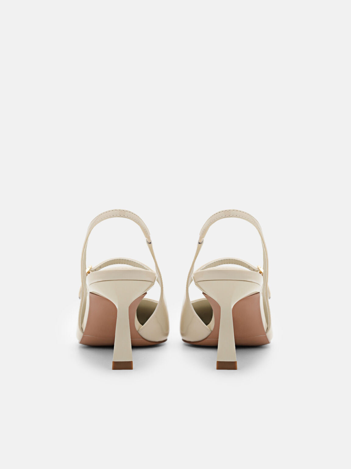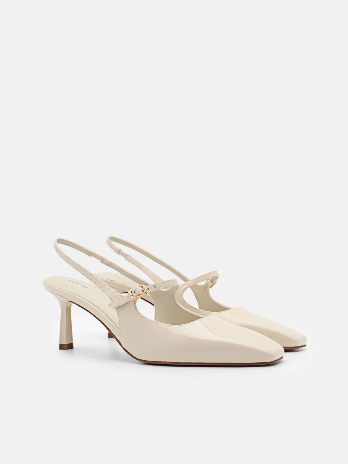 Crafted in glossy patent calf leather, the Leather Slingback Heel Pumps present a restrained silhouette defined by a squared toe...