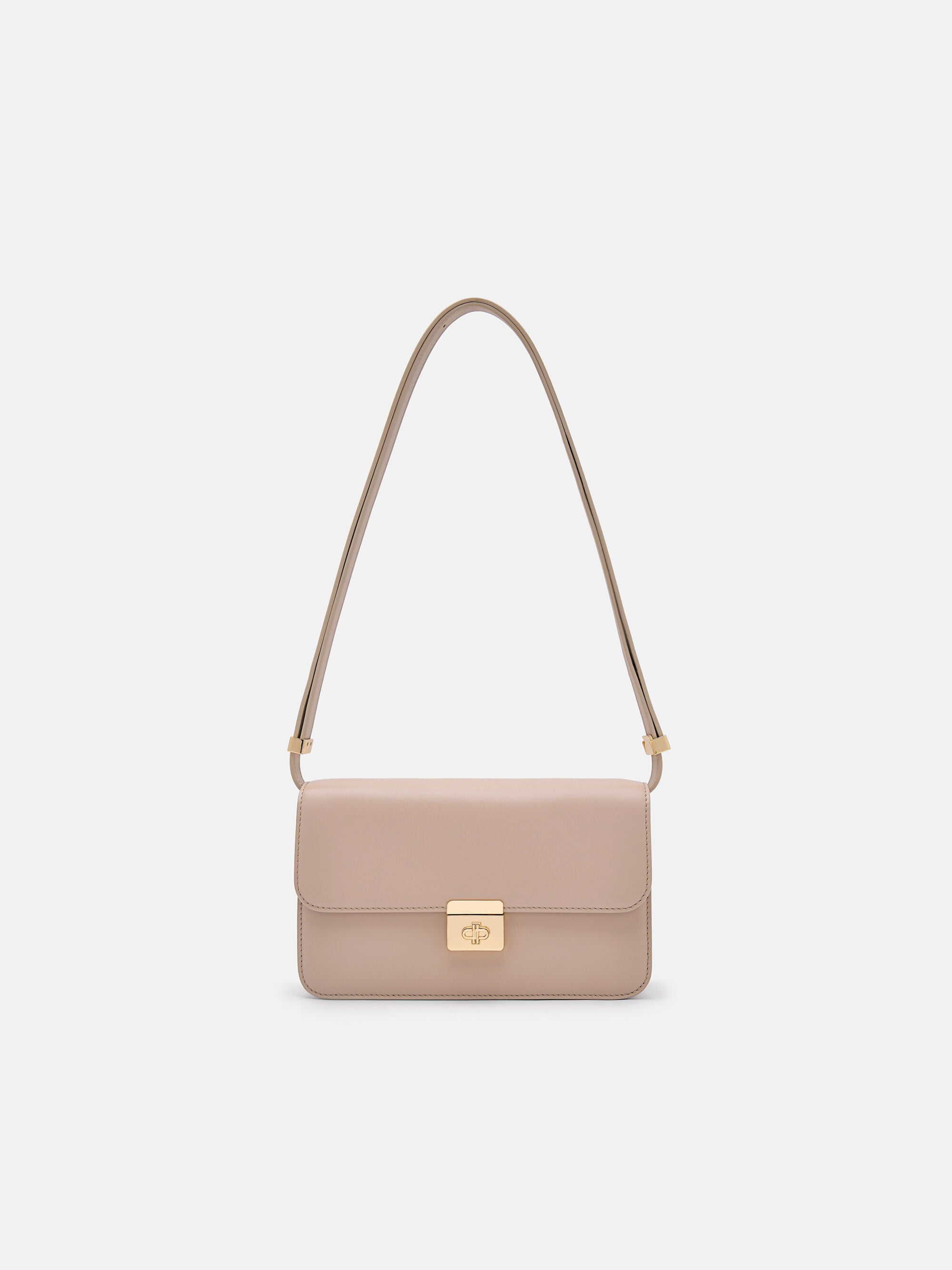 Crafted from smooth calf leather, this structured bag blends classic and contemporary with a metallic clasp, adding sophistication to any...