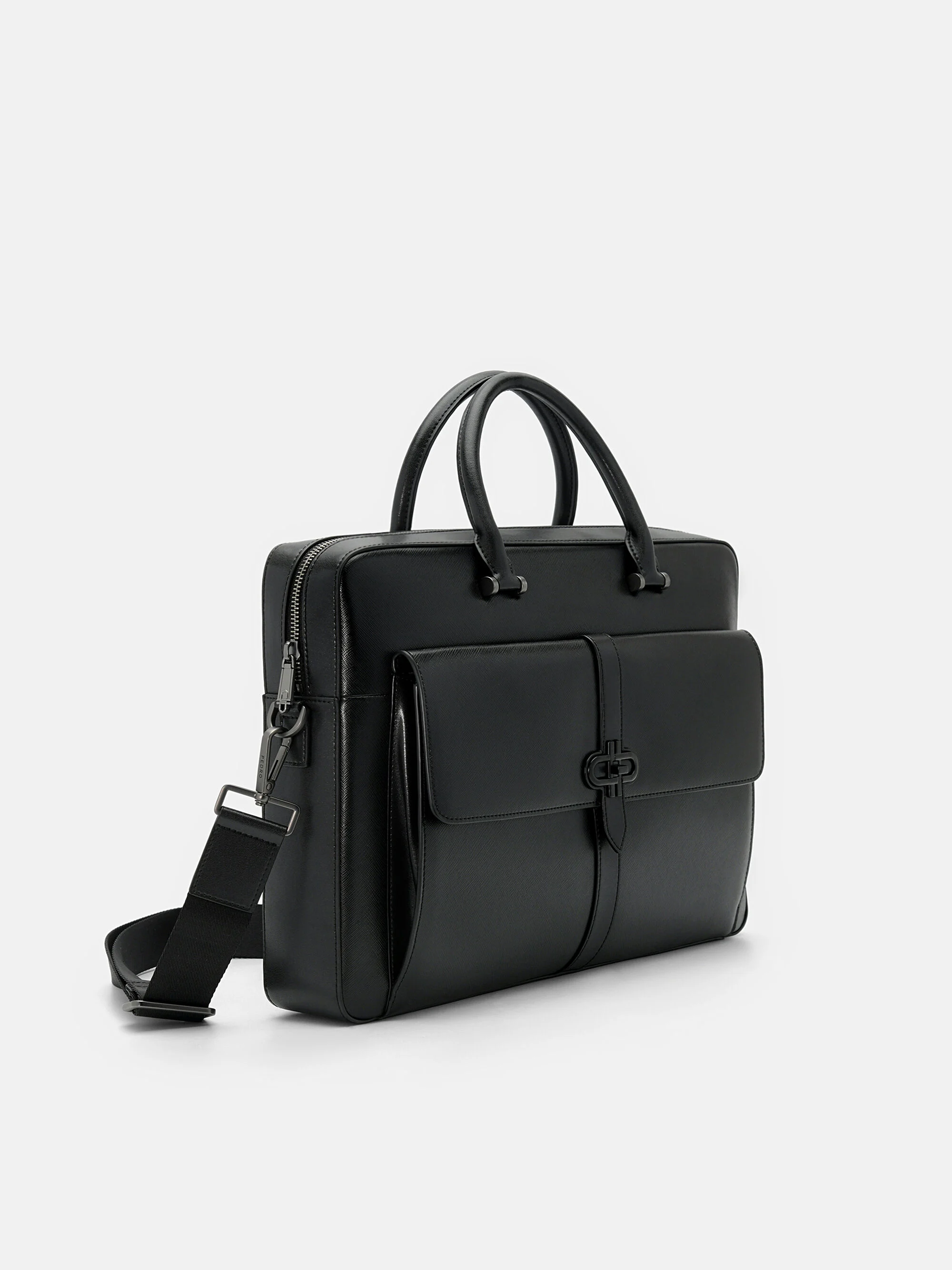 Saffiano Leather Briefcase - Black