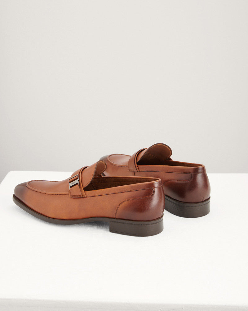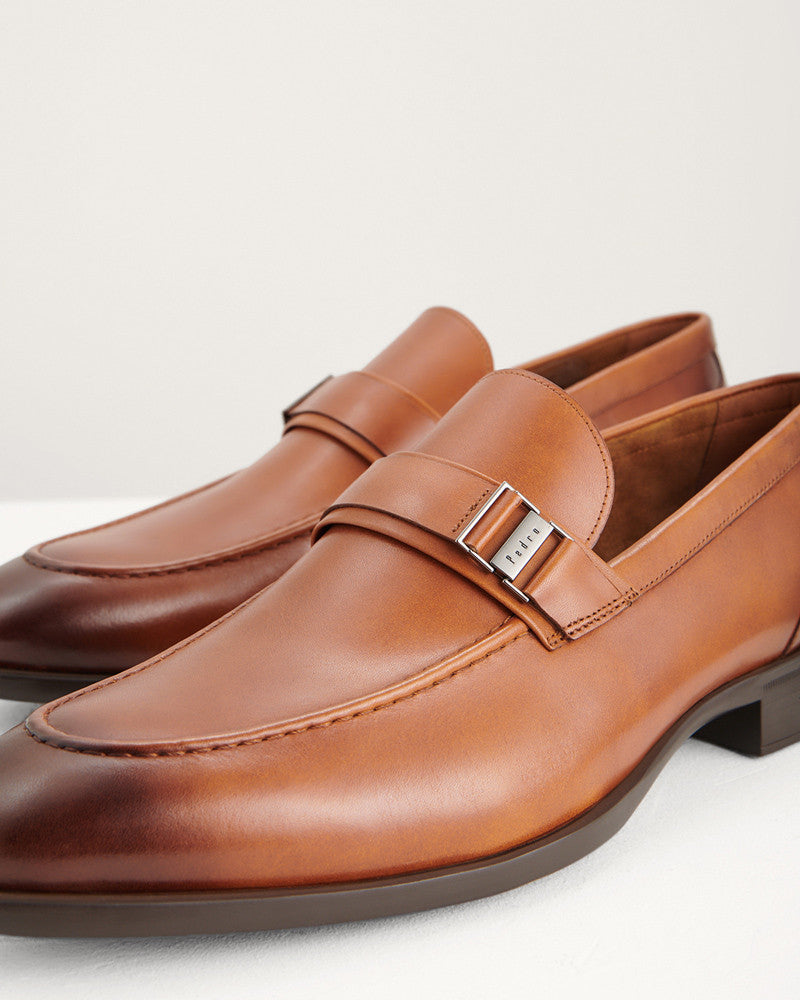 Rounded toe loafers crafted with burnished calf leather for added comfort, featuring the side buckle detail. Simply slip them on...