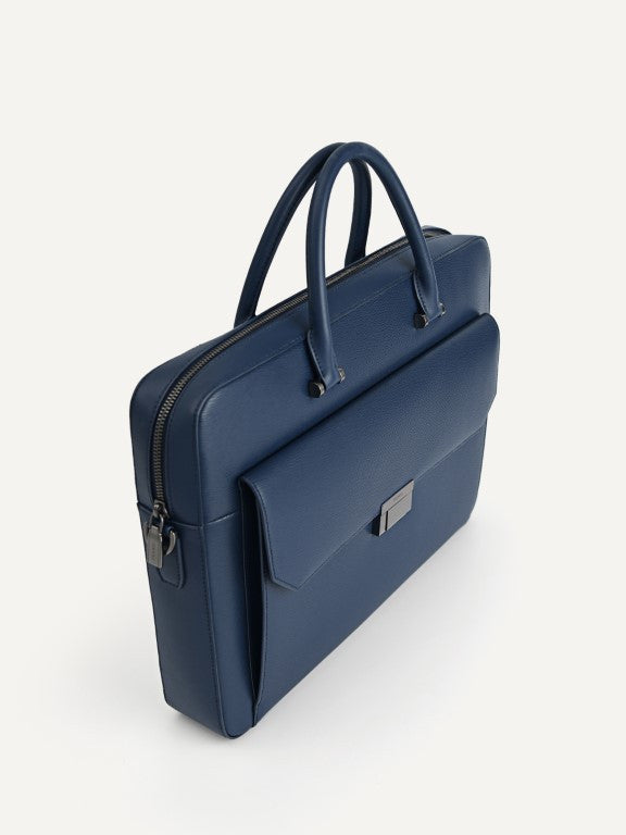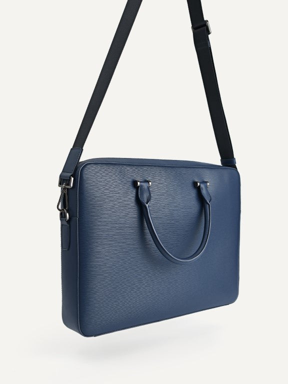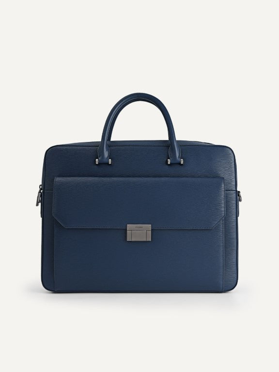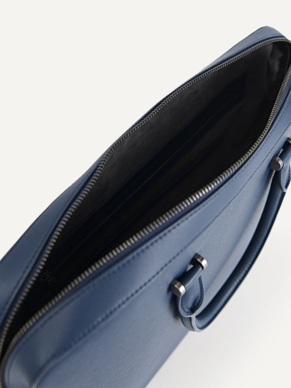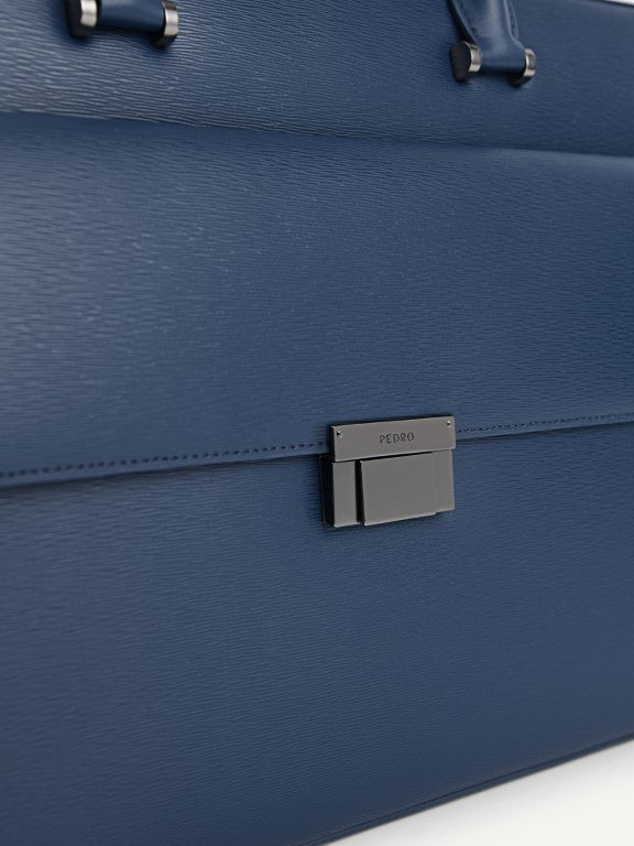 Textured Leather Briefcase - Navy