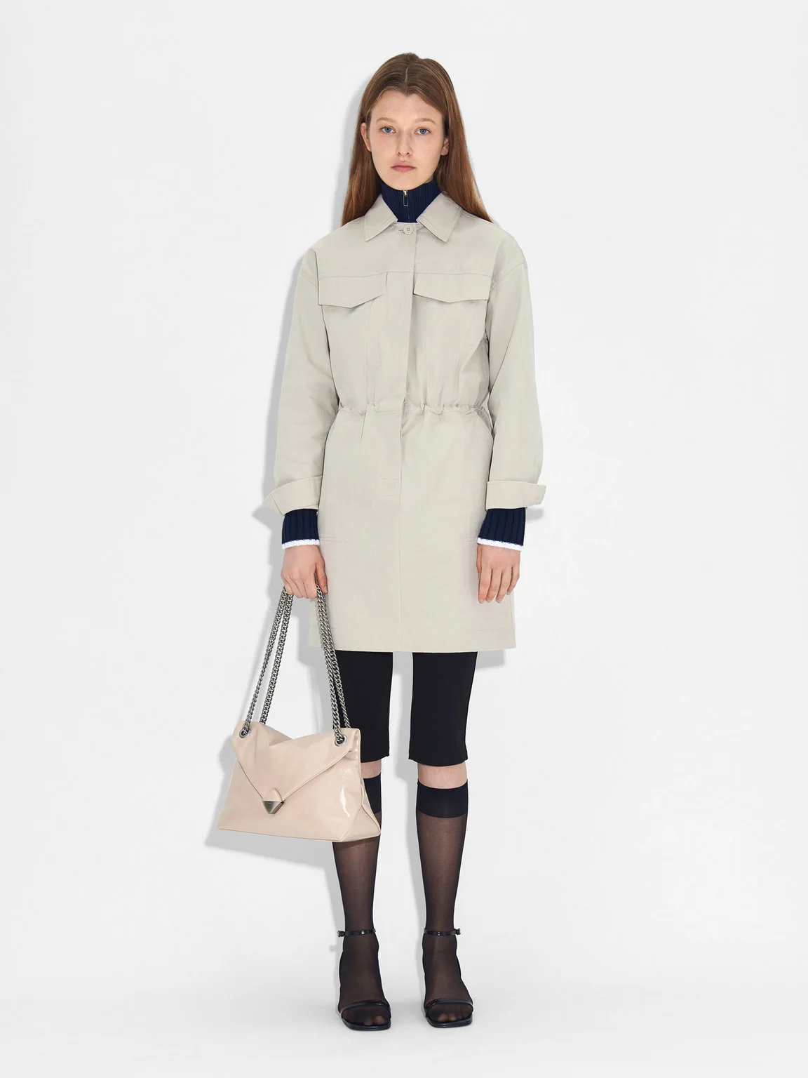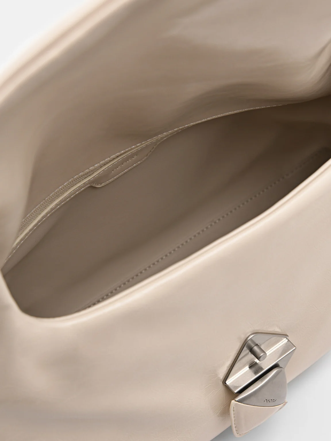 Discover urban sophistication with the Tria Shoulder Bag. Its distinctive wrinkled texture adds tactile allure, complemented by a bold chainlink...