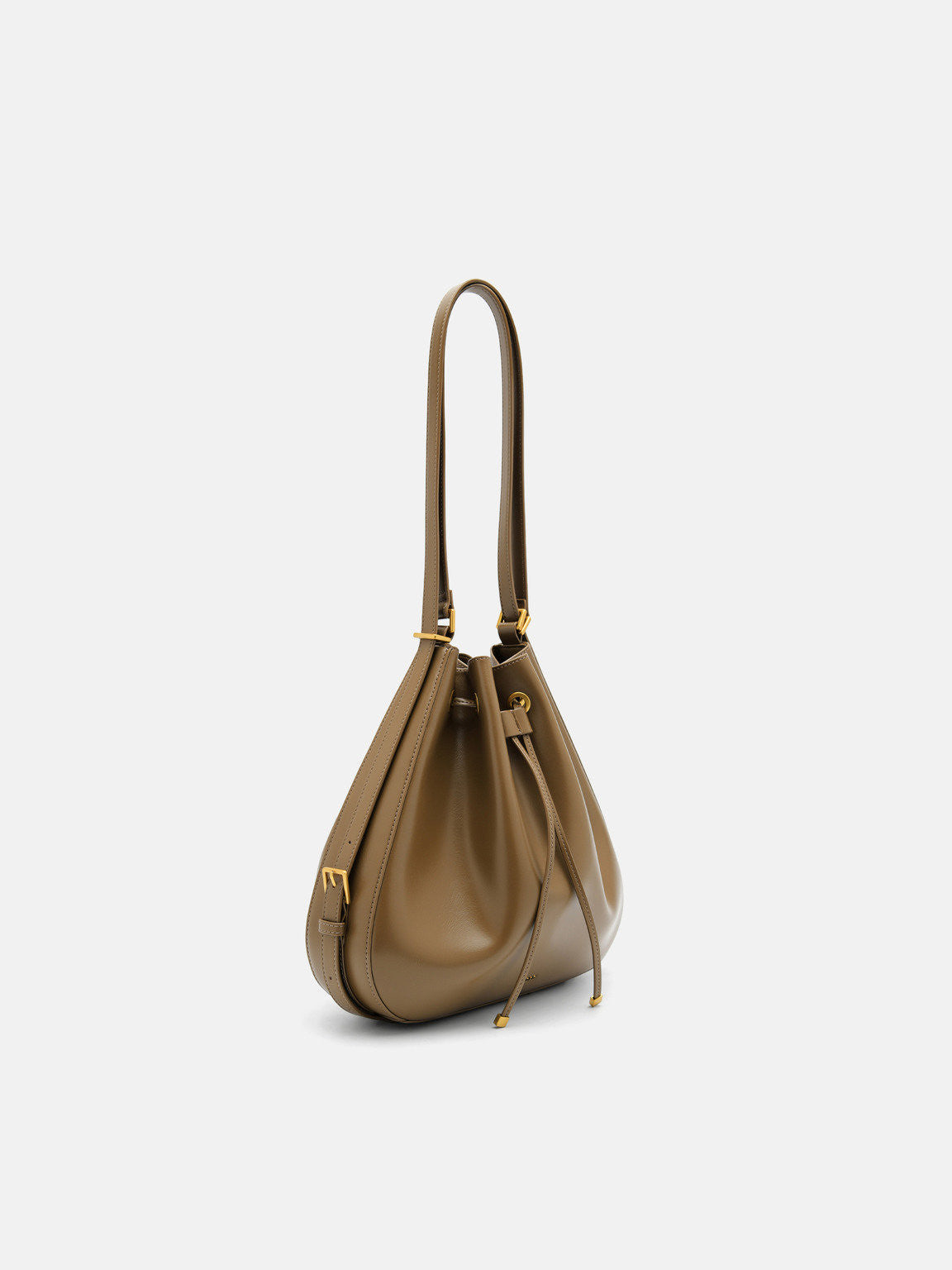 Wrinkled Drawstring Bucket Bag - Olive